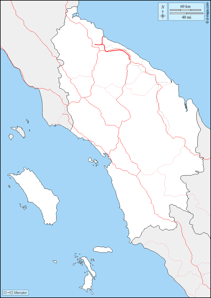d-maps > एशिया > इंडोनेशिया > उत्तर सुमात्रा > सीमाओं, सड़कों