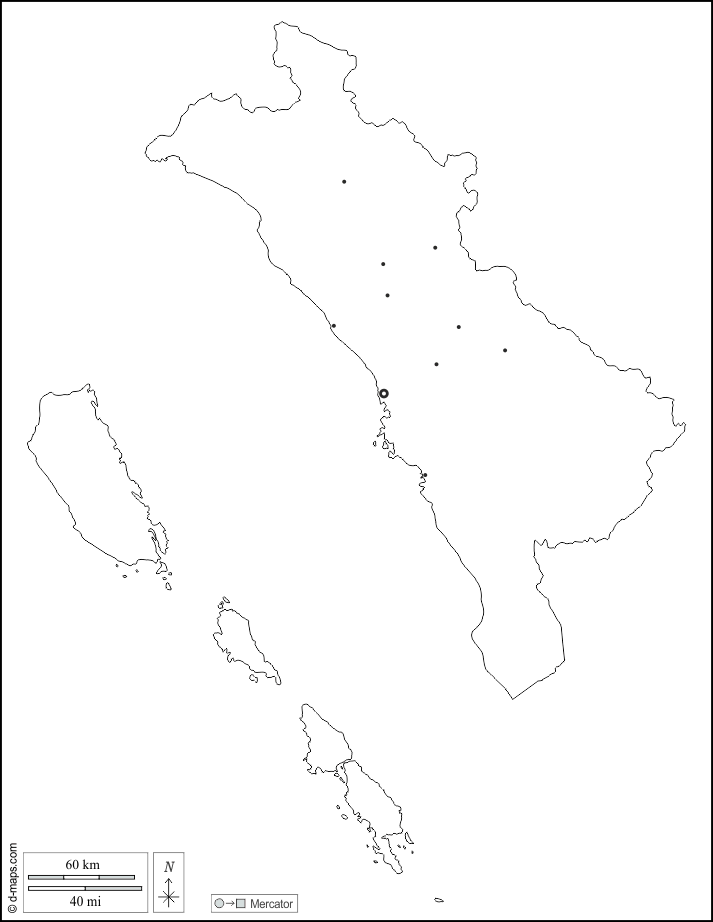 d-maps > एशिया > इंडोनेशिया > पश्चिम सुमात्रा > बाह्यरेखा, मुख्य शहरों, सफेद