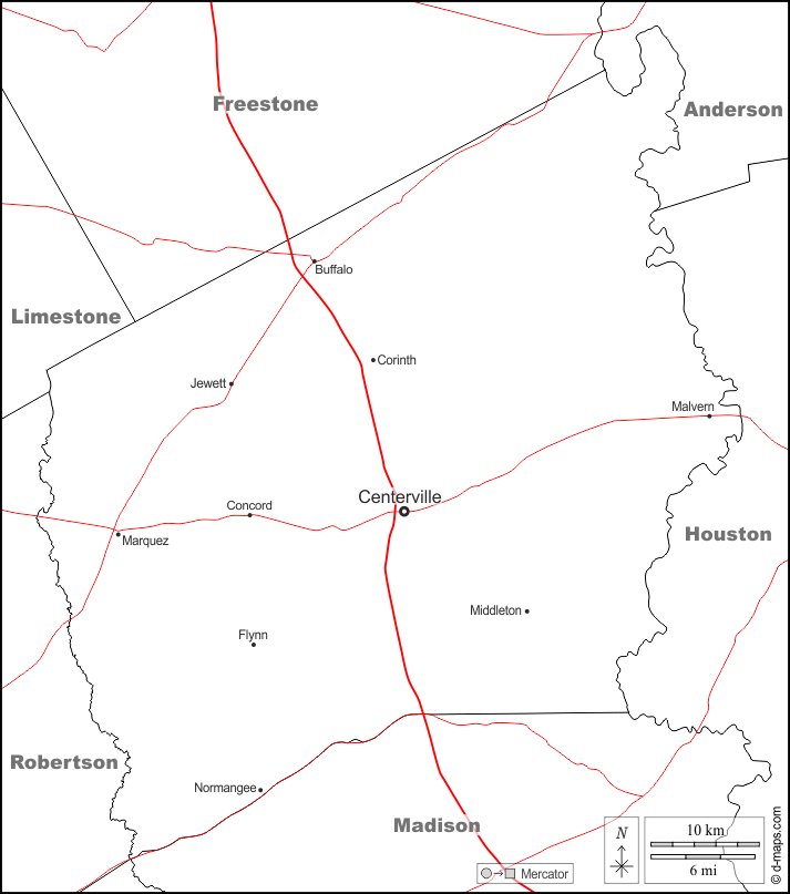 d-maps > संयुक्त राज्य > टेक्सास > लियोन काउंटी > सीमाओं, मुख्य शहरों, सड़कों, नाम, सफेद