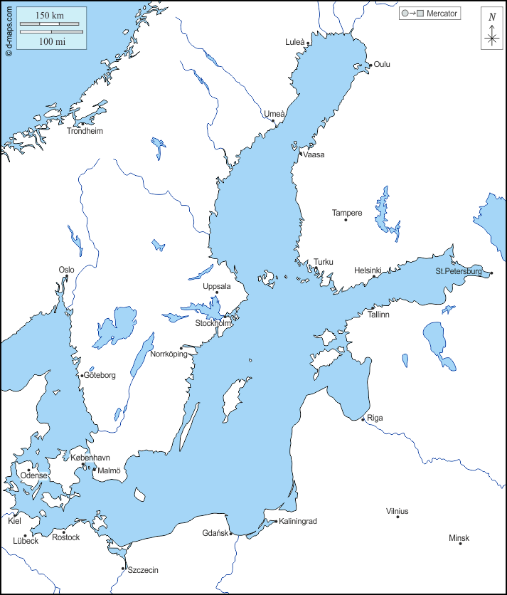 d-maps > यूरोप > बाल्टिक सागर > तटों, जल-सर्वेक्षण, मुख्य शहरों, नाम