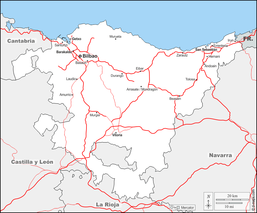 d-maps > यूरोप > स्पेन > बास्क प्रदेश > सीमाओं, मुख्य शहरों, सड़कों, नाम