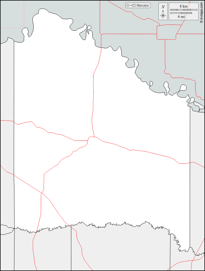 d-maps > संयुक्त राज्य > टेक्सास > रेड रिवर काउंटी > सीमाओं, सड़कों