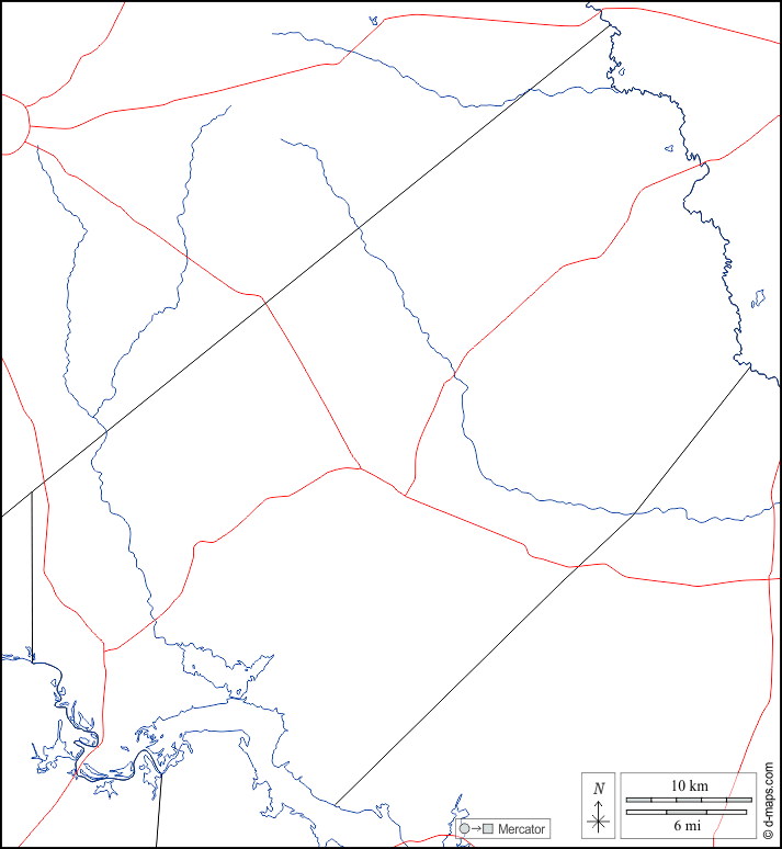 d-maps > संयुक्त राज्य > टेक्सास > ट्रिनिटी काउंटी > सीमाओं, जल-सर्वेक्षण, सड़कों, सफेद