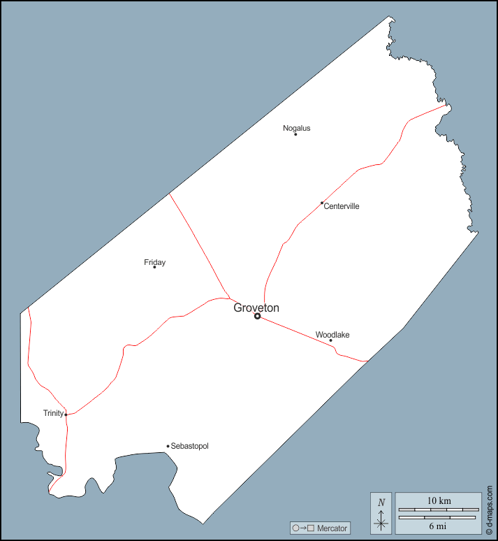 d-maps > संयुक्त राज्य > टेक्सास > ट्रिनिटी काउंटी > बाह्यरेखा, मुख्य शहरों, सड़कों, नाम