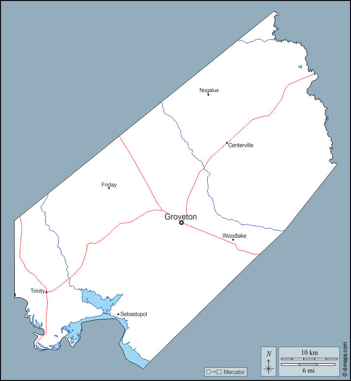 d-maps > संयुक्त राज्य > टेक्सास > ट्रिनिटी काउंटी > बाह्यरेखा, जल-सर्वेक्षण, मुख्य शहरों, सड़कों, नाम