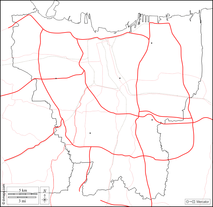 d-maps > एशिया > इंडोनेशिया > जकार्ता > सीमाओं, पड़ोस, सड़कों, सफेद