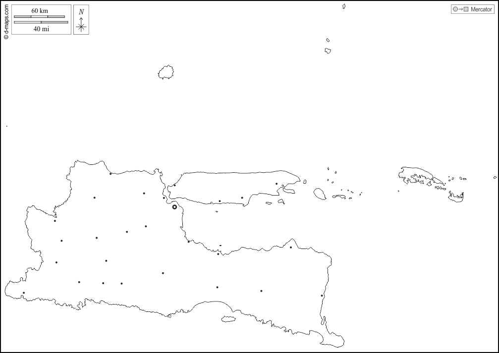 एशिया > इंडोनेशिया > पूर्व जावा > बाह्यरेखा, मुख्य शहरों, सफेद