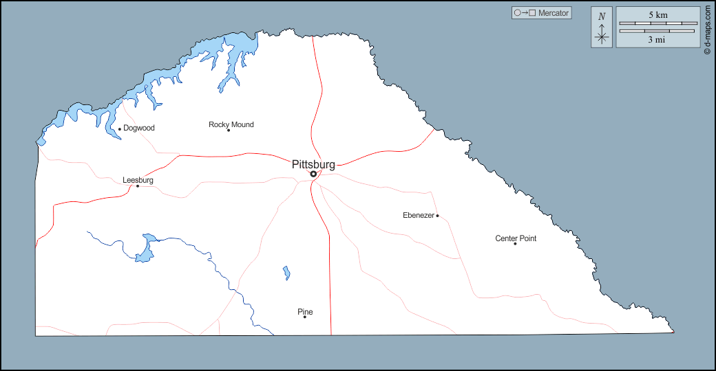 d-maps > संयुक्त राज्य > टेक्सास > शिविर काउंटी > बाह्यरेखा, जल-सर्वेक्षण, मुख्य शहरों, सड़कों, नाम
