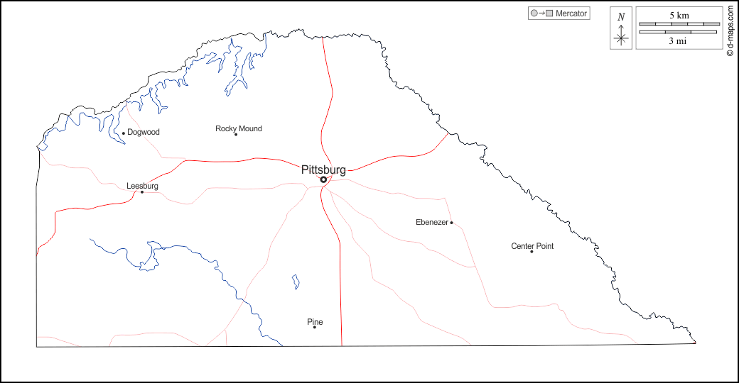 d-maps > संयुक्त राज्य > टेक्सास > शिविर काउंटी > बाह्यरेखा, जल-सर्वेक्षण, मुख्य शहरों, सड़कों, नाम, सफेद
