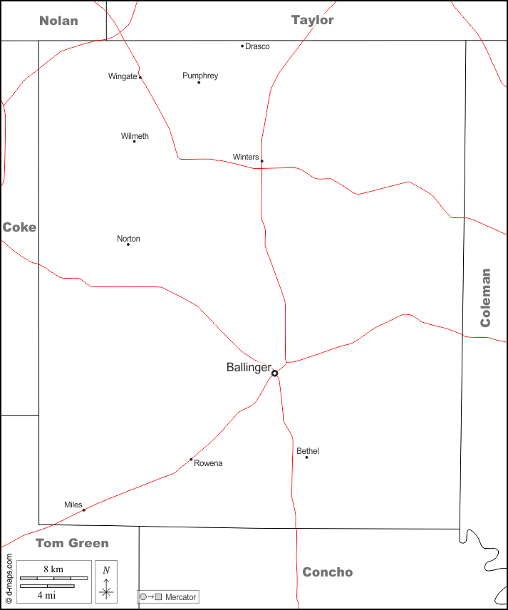 d-maps > संयुक्त राज्य > टेक्सास > रननल्स काउंटी > सीमाओं, मुख्य शहरों, सड़कों, नाम, सफेद