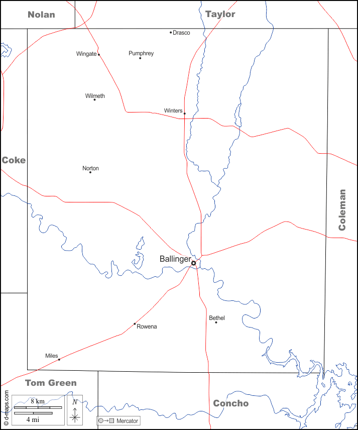 d-maps > संयुक्त राज्य > टेक्सास > रननल्स काउंटी > सीमाओं, जल-सर्वेक्षण, मुख्य शहरों, सड़कों, नाम, सफेद
