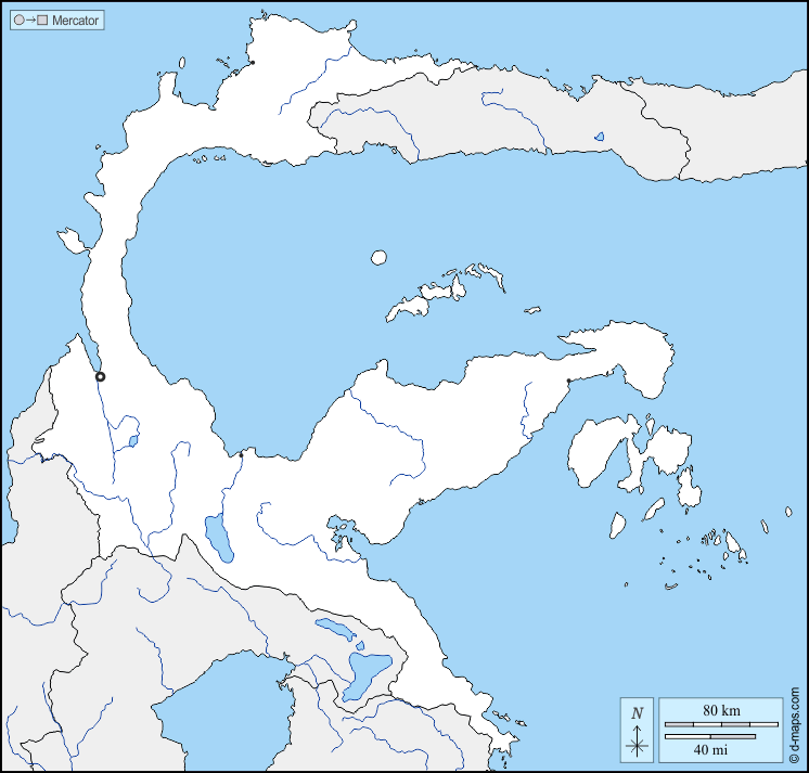 d-maps > एशिया > इंडोनेशिया > मध्य सुलावेसी > सीमाओं, जल-सर्वेक्षण, मुख्य शहरों