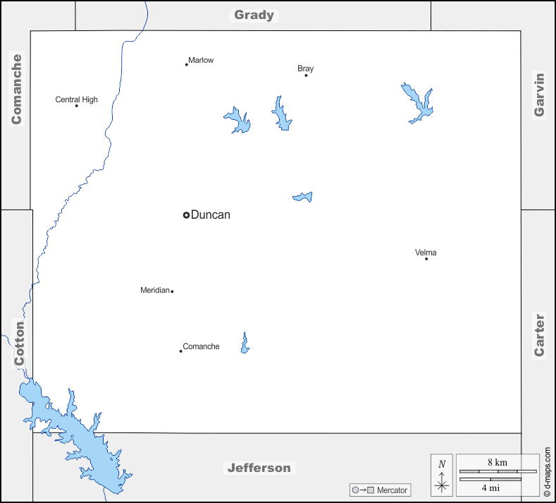 d-maps > संयुक्त राज्य > ओकलाहोमा > स्टीफंस काउंटी > सीमाओं, जल-सर्वेक्षण, मुख्य शहरों, नाम
