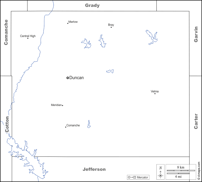 d-maps > संयुक्त राज्य > ओकलाहोमा > स्टीफंस काउंटी > सीमाओं, जल-सर्वेक्षण, मुख्य शहरों, नाम, सफेद