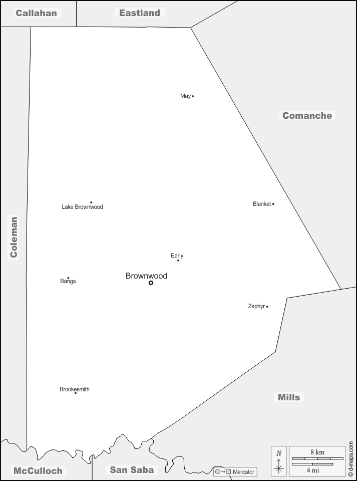 d-maps > संयुक्त राज्य > टेक्सास > ब्राउन काउंटी > सीमाओं, मुख्य शहरों, नाम