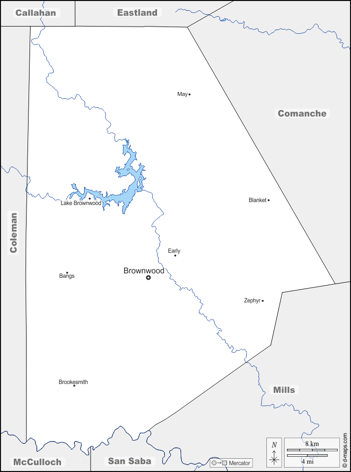 d-maps > संयुक्त राज्य > टेक्सास > ब्राउन काउंटी > सीमाओं, जल-सर्वेक्षण, मुख्य शहरों, नाम