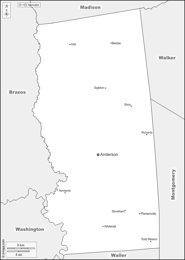 d-maps > संयुक्त राज्य > टेक्सास > ग्रिम्स काउंटी > सीमाओं, मुख्य शहरों, नाम