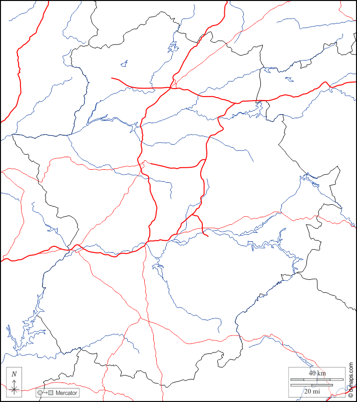 d-maps > यूरोप > स्पेन > एक्स्ट्रिमादुरा > सीमाओं, जल-सर्वेक्षण, सड़कों, सफेद