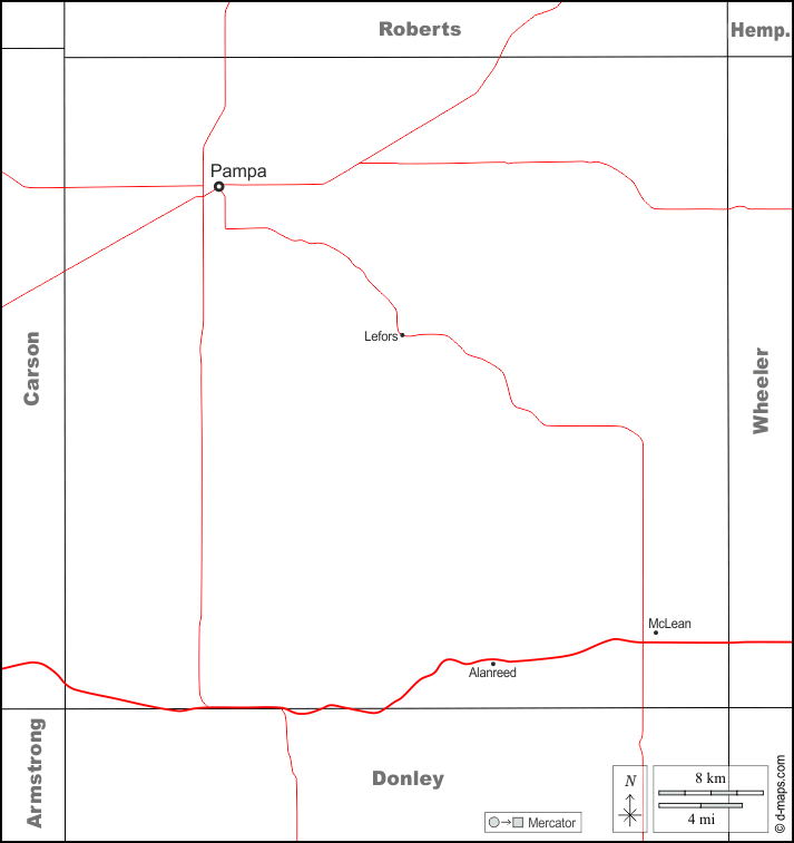d-maps > संयुक्त राज्य > टेक्सास > ग्रे काउंटी > सीमाओं, मुख्य शहरों, सड़कों, नाम, सफेद