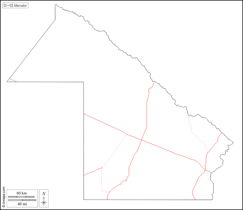 d-maps > महाअमेरिका > अर्जेंटीना > चाको प्रांत > बाह्यरेखा, सड़कों, सफेद