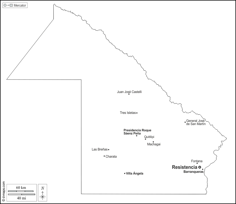 d-maps > महाअमेरिका > अर्जेंटीना > चाको प्रांत > बाह्यरेखा, मुख्य शहरों, नाम, सफेद