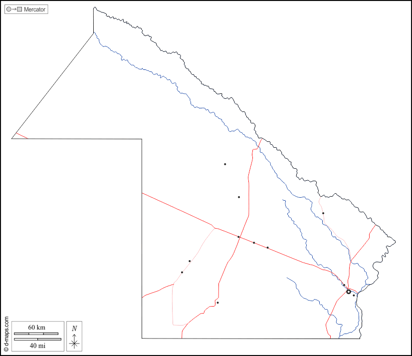 d-maps > महाअमेरिका > अर्जेंटीना > चाको प्रांत > बाह्यरेखा, जल-सर्वेक्षण, मुख्य शहरों, सड़कों, सफेद