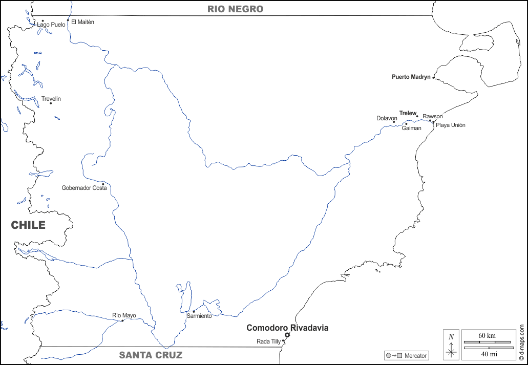 d-maps > महाअमेरिका > अर्जेंटीना > चुबुत प्रांत > सीमाओं, जल-सर्वेक्षण, मुख्य शहरों, नाम, सफेद