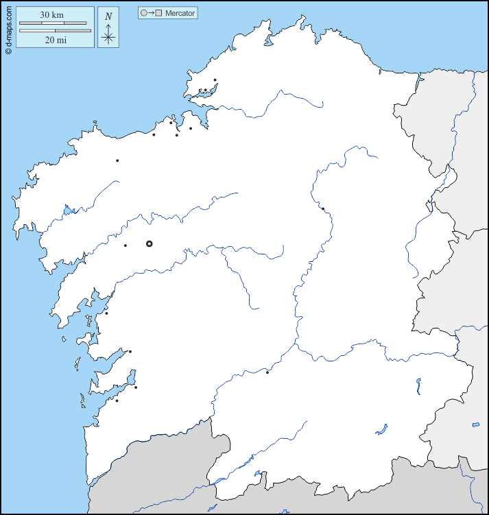 d-maps > यूरोप > स्पेन > गलिशिया > सीमाओं, जल-सर्वेक्षण, मुख्य शहरों