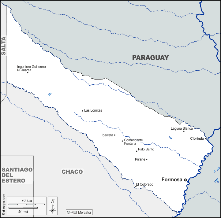 d-maps > महाअमेरिका > अर्जेंटीना > फ़ॉरमोसा प्रान्त > सीमाओं, जल-सर्वेक्षण, मुख्य शहरों, नाम