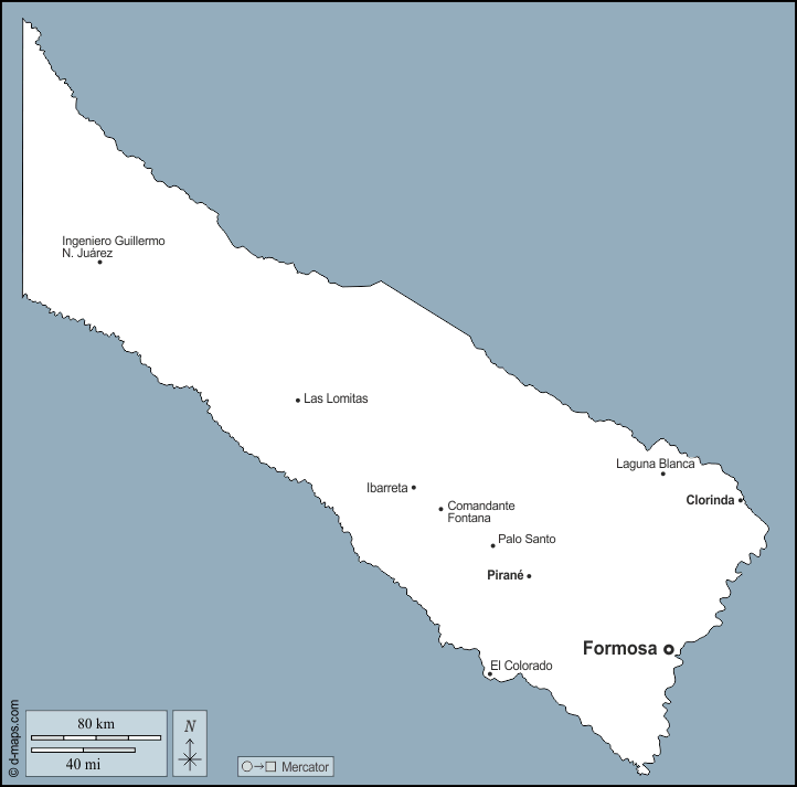 d-maps > महाअमेरिका > अर्जेंटीना > फ़ॉरमोसा प्रान्त > बाह्यरेखा, मुख्य शहरों, नाम