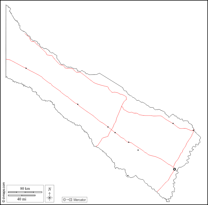 d-maps > महाअमेरिका > अर्जेंटीना > फ़ॉरमोसा प्रान्त > बाह्यरेखा, मुख्य शहरों, सड़कों, सफेद