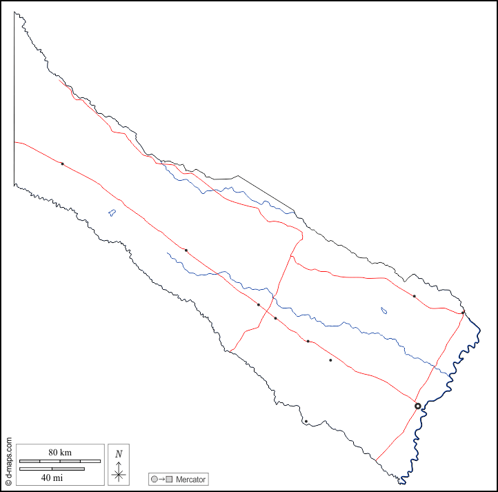d-maps > महाअमेरिका > अर्जेंटीना > फ़ॉरमोसा प्रान्त > बाह्यरेखा, जल-सर्वेक्षण, मुख्य शहरों, सड़कों, सफेद