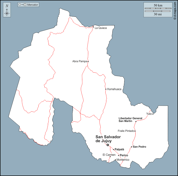 d-maps > महाअमेरिका > अर्जेंटीना > ज्यूजुई > बाह्यरेखा, मुख्य शहरों, सड़कों, नाम