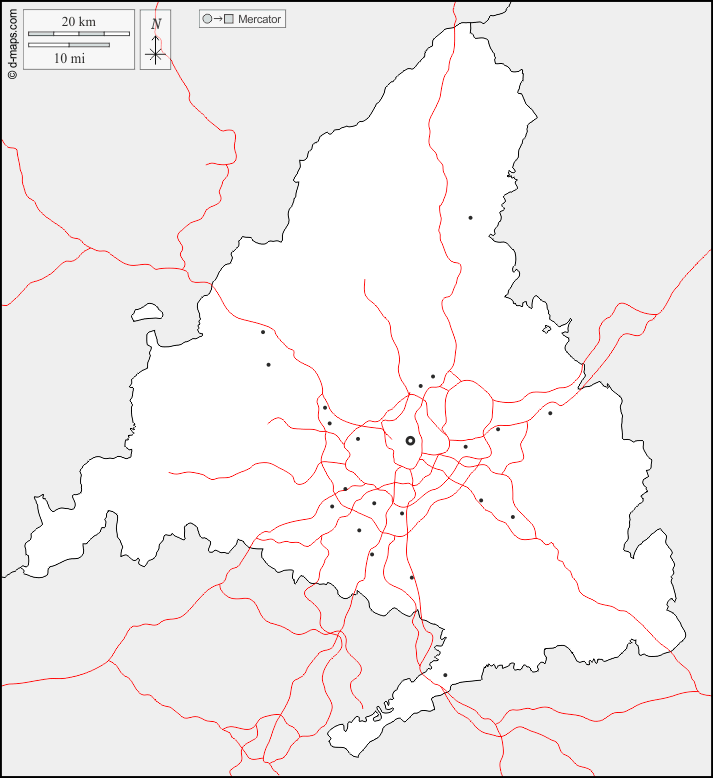 d-maps > यूरोप > स्पेन > मैड्रिड > सीमाओं, मुख्य शहरों, सड़कों