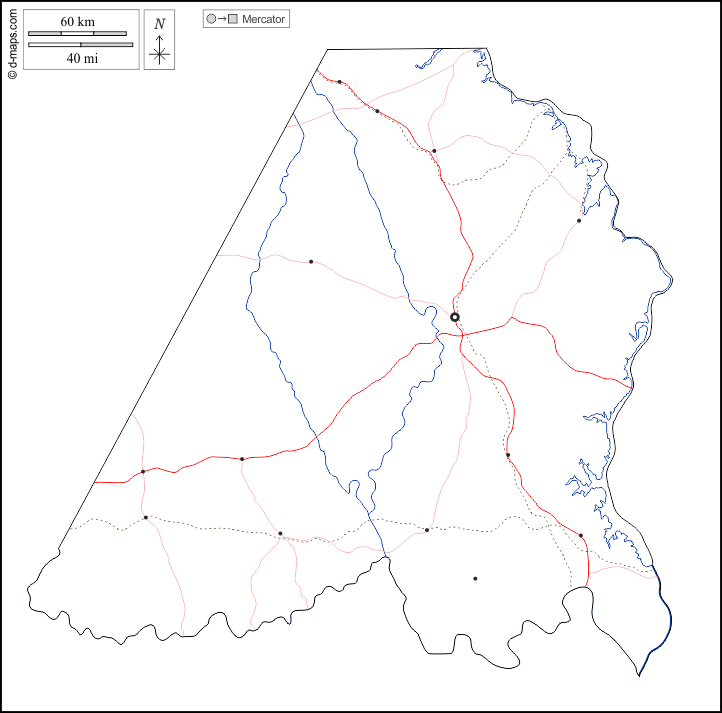 d-maps > संयुक्त राज्य > नॉर्थ कैरोलिना > स्टेनली काउंटी > बाह्यरेखा, जल-सर्वेक्षण, मुख्य शहरों, सड़कों, सफेद