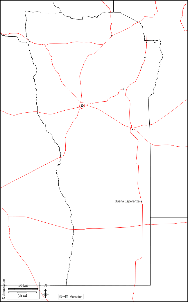 d-maps > महाअमेरिका > अर्जेंटीना > सैन लुई प्रान्त > सीमाओं, मुख्य शहरों, सड़कों, सफेद