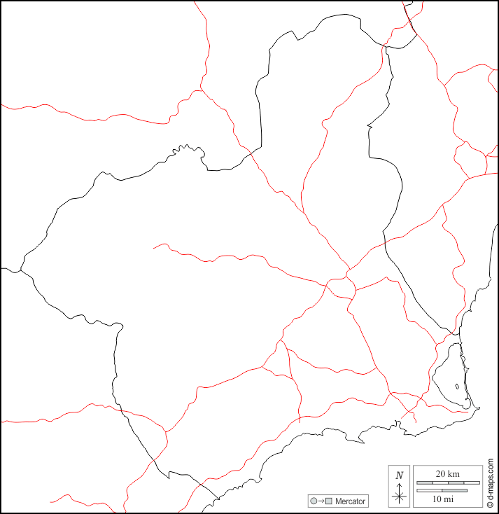 d-maps > यूरोप > स्पेन > मर्सिया > सीमाओं, सड़कों, सफेद