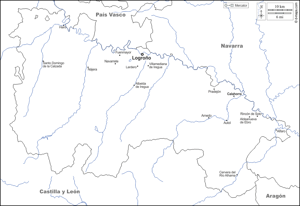 d-maps > यूरोप > स्पेन > ला रियोजा > सीमाओं, जल-सर्वेक्षण, मुख्य शहरों, नाम, सफेद
