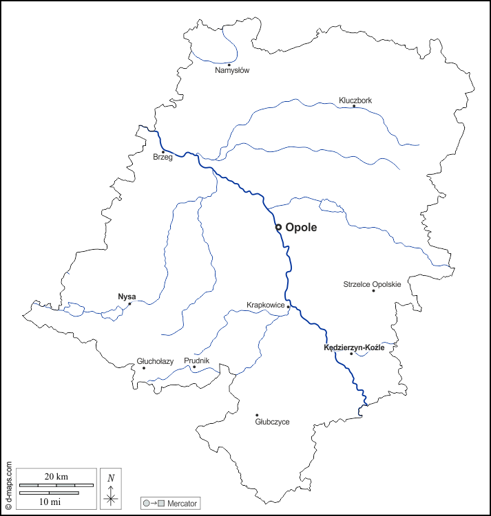 d-maps > यूरोप > पोलैंड > ऑपोल > बाह्यरेखा, जल-सर्वेक्षण, मुख्य शहरों, नाम, सफेद