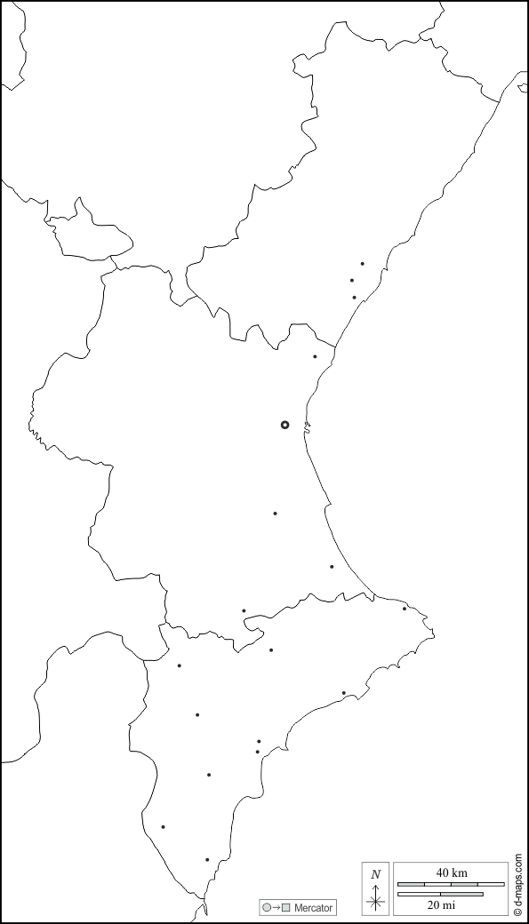 d-maps > यूरोप > स्पेन > वैलेंसियाई समुदाय > सीमाओं, प्रांतों, मुख्य शहरों, सफेद