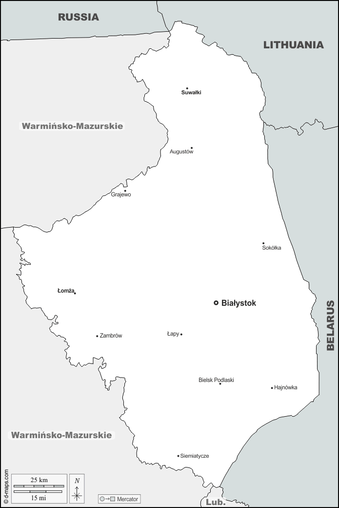 d-maps > यूरोप > पोलैंड > पॉडलोस्की > सीमाओं, मुख्य शहरों, नाम