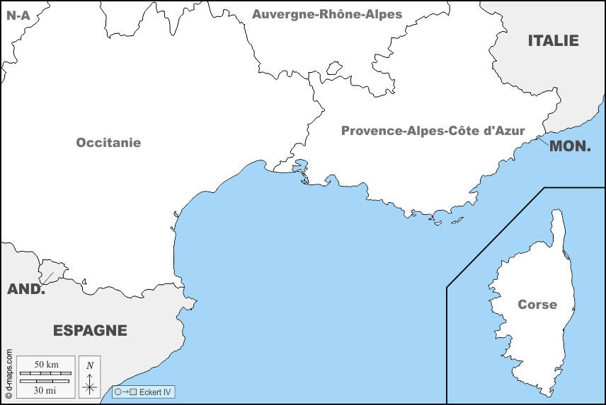 d-maps > यूरोप > फ़्रान्स > दक्षिण > सीमाओं, क्षेत्रों, नाम
