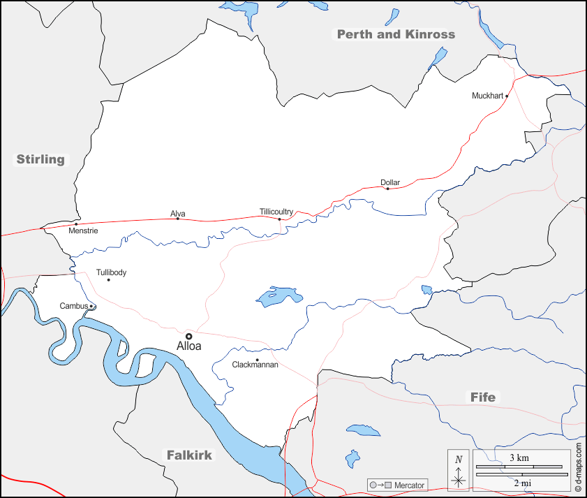 d-maps > यूरोप > युनाइटेड किंगडम > क्लकमेननशायर > सीमाओं, जल-सर्वेक्षण, मुख्य शहरों, सड़कों, नाम