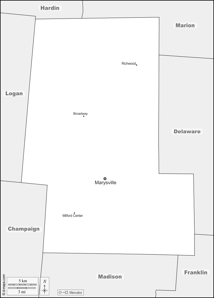 d-maps > संयुक्त राज्य > ओहायो > यूनियन काउंटी > सीमाओं, मुख्य शहरों, नाम