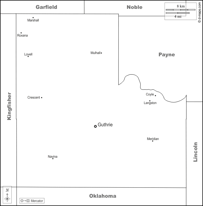 d-maps > संयुक्त राज्य > ओकलाहोमा > लोगान काउंटी > सीमाओं, मुख्य शहरों, नाम, सफेद