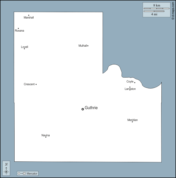 d-maps > संयुक्त राज्य > ओकलाहोमा > लोगान काउंटी > बाह्यरेखा, मुख्य शहरों, नाम