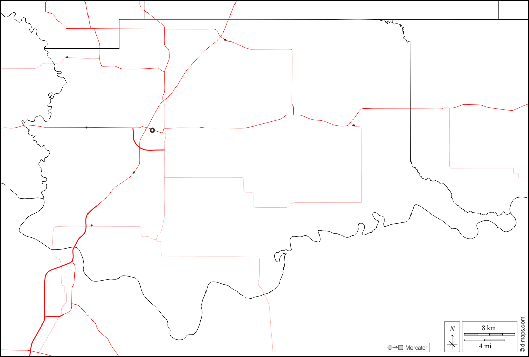 d-maps > संयुक्त राज्य > ओकलाहोमा > ब्रायन काउंटी > सीमाओं, मुख्य शहरों, सड़कों, सफेद