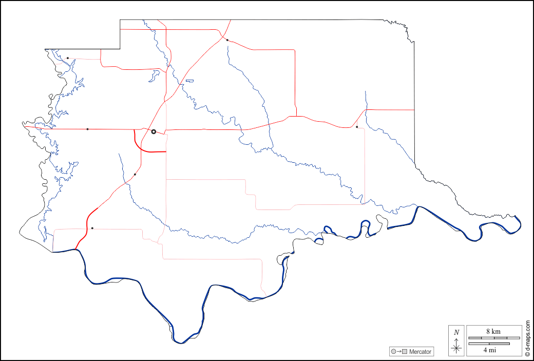 d-maps > संयुक्त राज्य > ओकलाहोमा > ब्रायन काउंटी > बाह्यरेखा, जल-सर्वेक्षण, मुख्य शहरों, सड़कों, सफेद