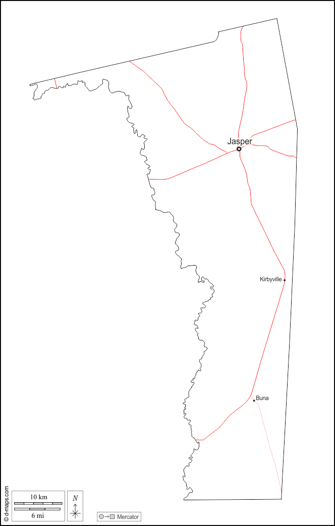 d-maps > संयुक्त राज्य > टेक्सास > जैस्पर काउंटी > बाह्यरेखा, मुख्य शहरों, सड़कों, नाम, सफेद
