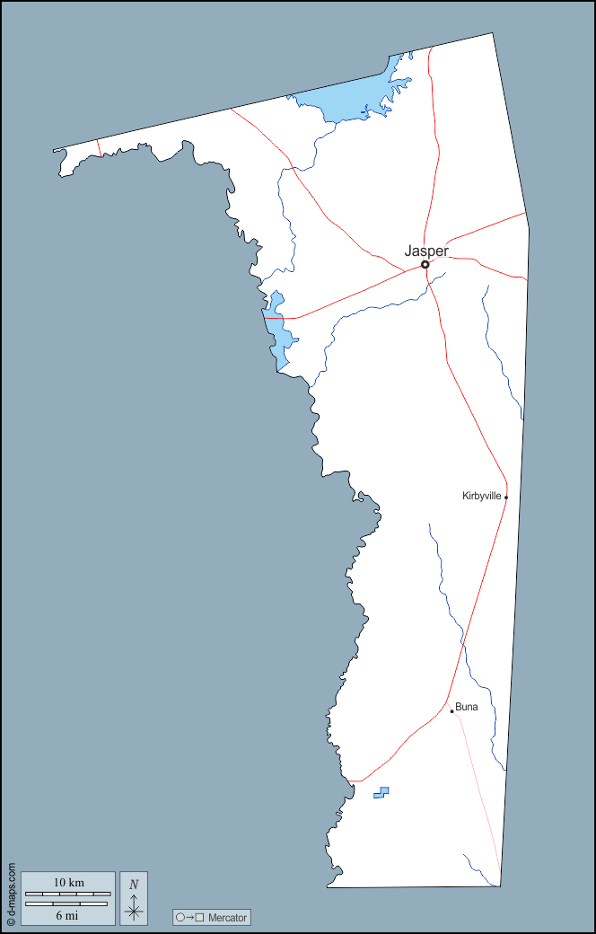 d-maps > संयुक्त राज्य > टेक्सास > जैस्पर काउंटी > बाह्यरेखा, जल-सर्वेक्षण, मुख्य शहरों, सड़कों, नाम